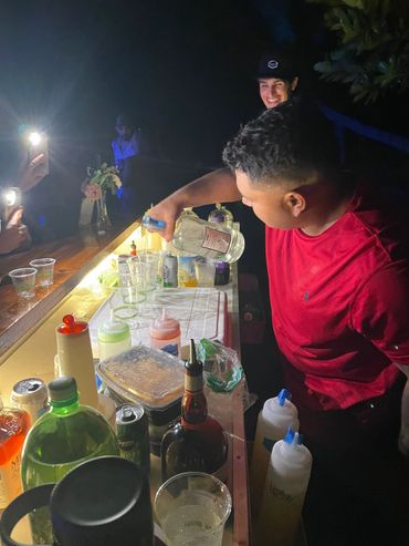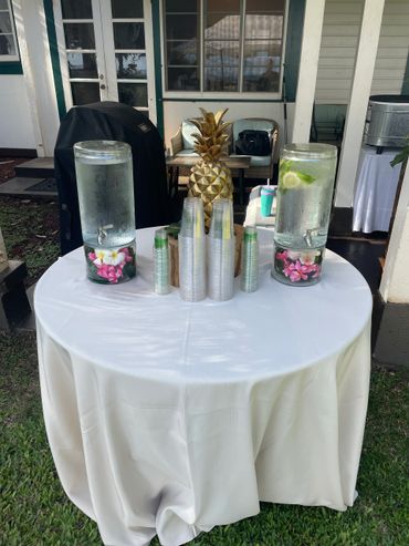 This is our first mobile bar at Kauai Event Bartending. It can fold up and be taken anywhere. It has three wells, an ice bin, and has room for two bartenders. It was hand built by William Collins (Jessica’s Husband). He is in the process of building a mobile tiki bar and a twin bar to the one above, but will have a sink! Photos to come!